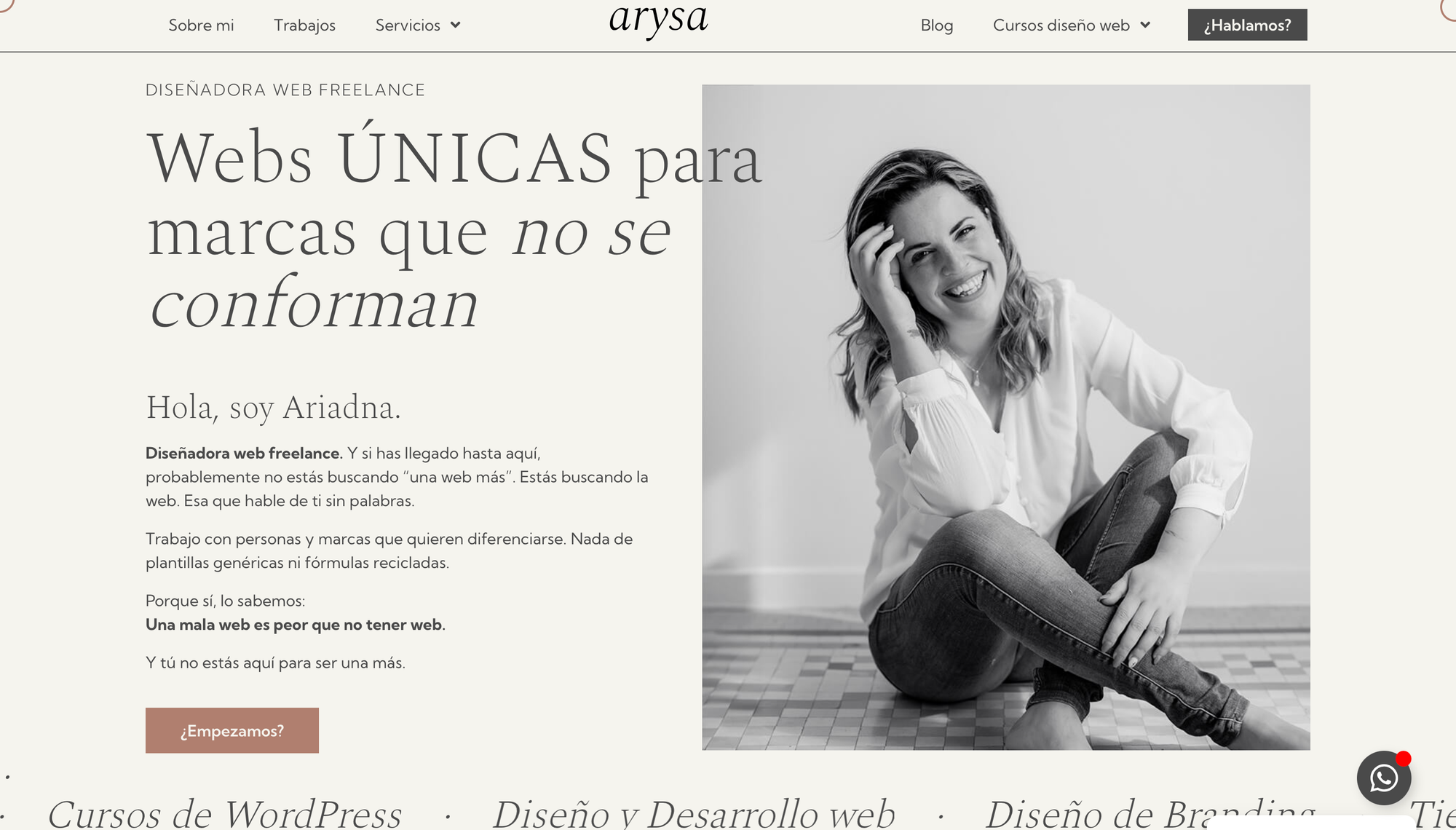 Ariadna Santana lleva años construyendo webs a medida desde Valencia. Diseñadora freelance, profesora de diseño web con WordPress en CEI Escuela de Diseño y Marketing, y fundadora de Llum Coworking — uno de los espacios más conocidos del centro de Valencia. Eso da una idea de quién es y cómo trabaja.